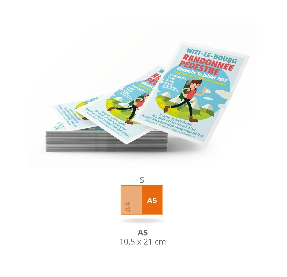 Nos flyers sont imprimés sur un papier couché brillant de 135g, léger et souple pour une bonne distribution que ce soit posé sur un comptoir, pour une distribution à la main, ou une distribution en boîte aux lettres.
